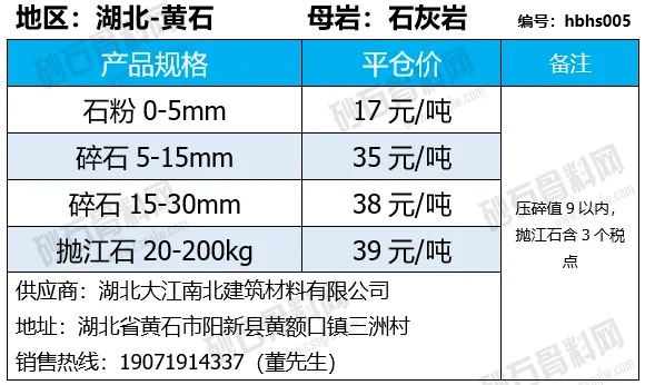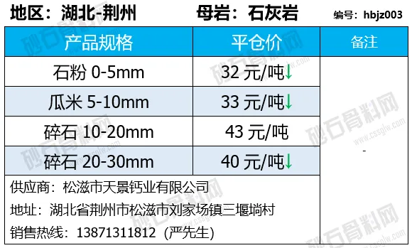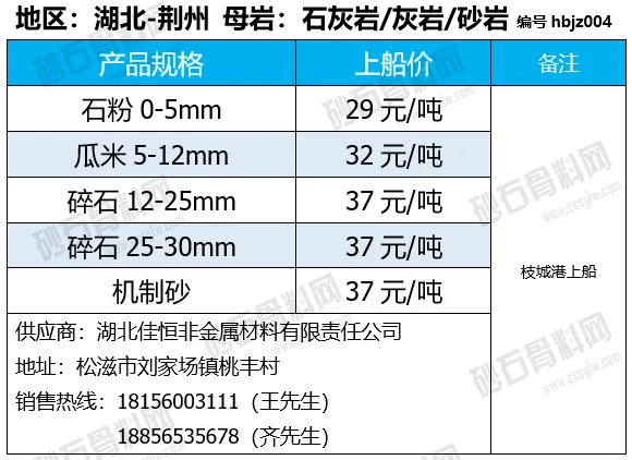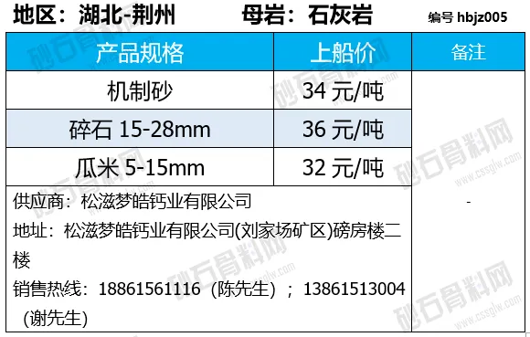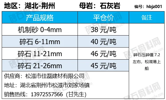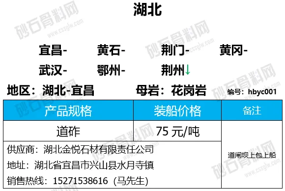 湖北荆州碎石下降1-3元/吨;