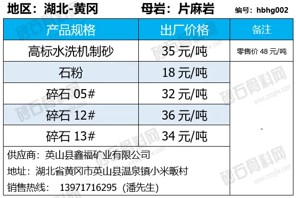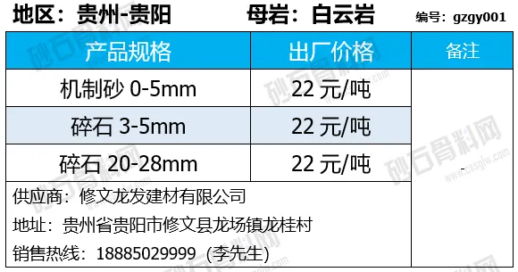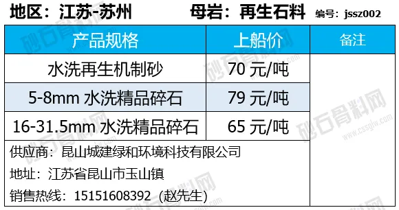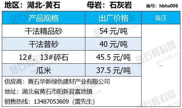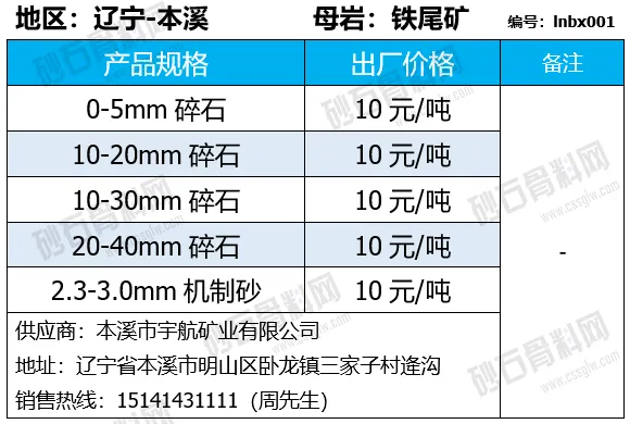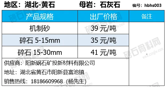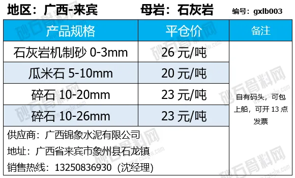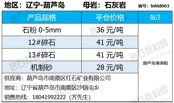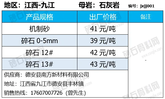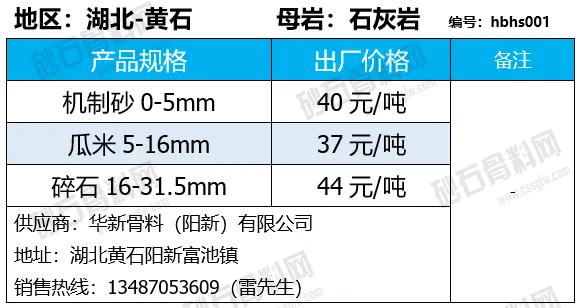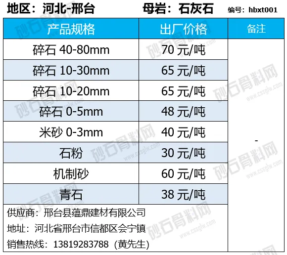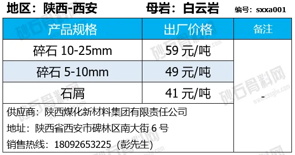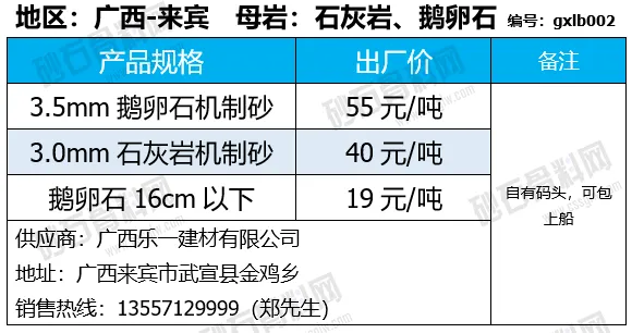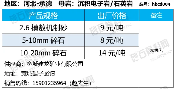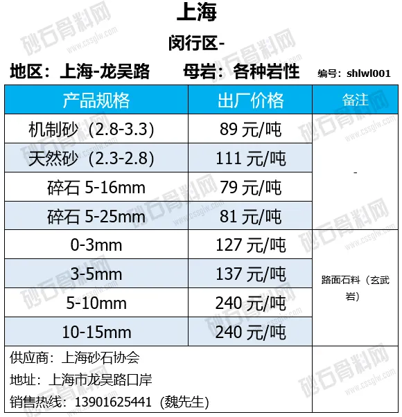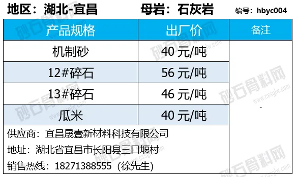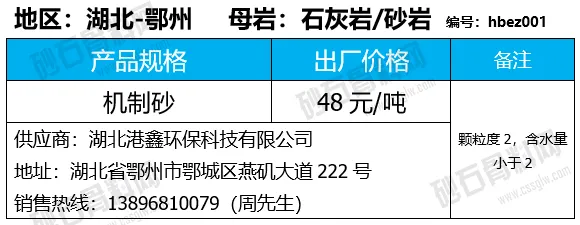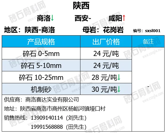 陕西商洛机制砂、碎石下降2-4元/吨;