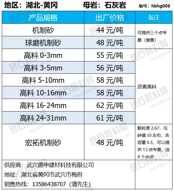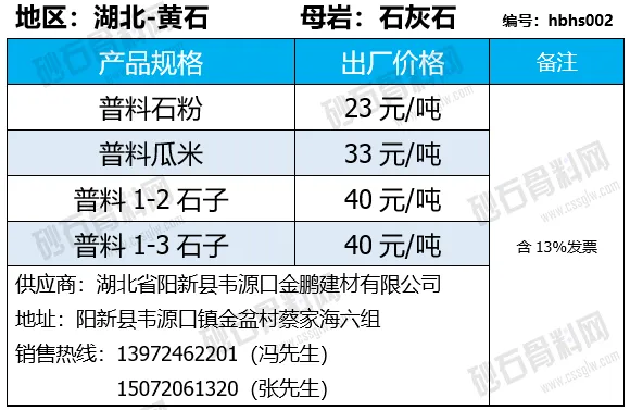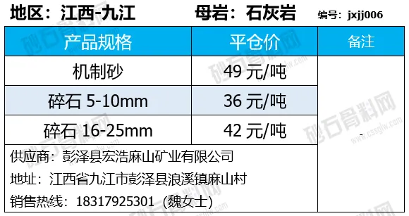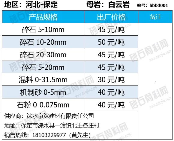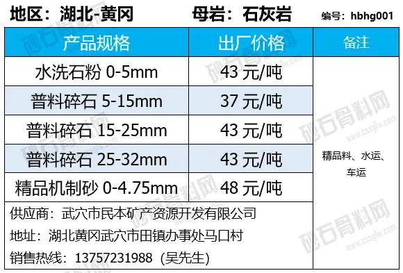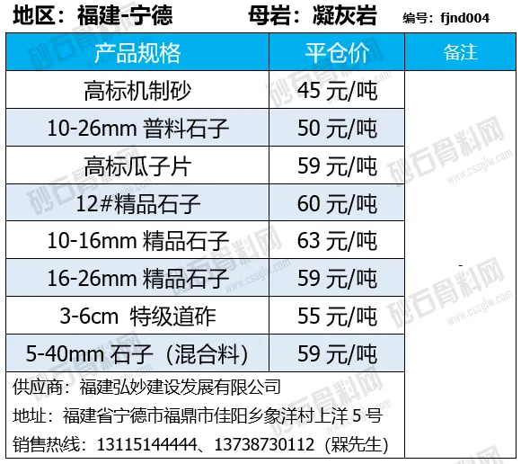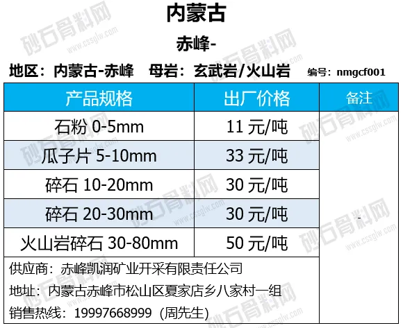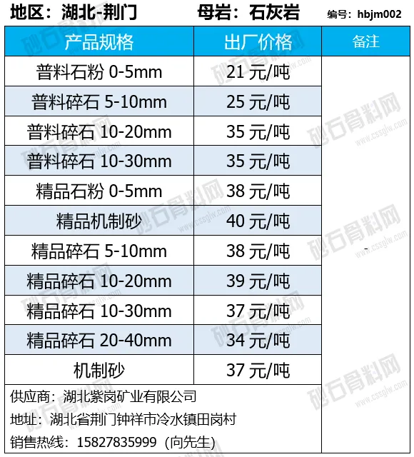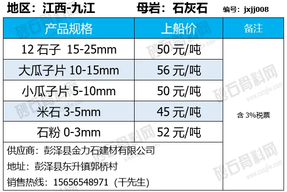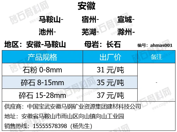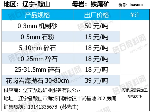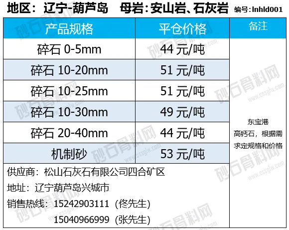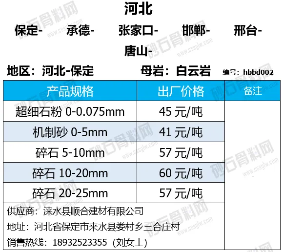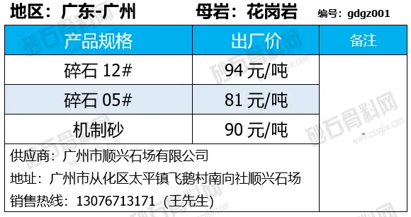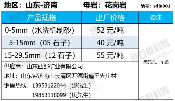 陕西商洛机制砂、碎石下降2-4元/吨;