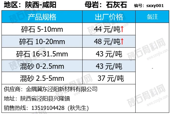 陕西咸阳碎石上涨1-2元/吨;