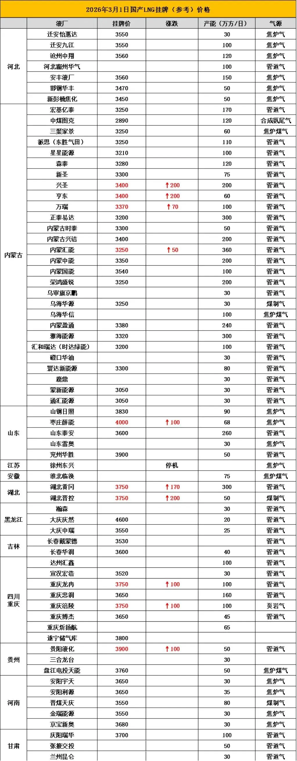 今日国内LNG市场价格窄幅上调,需求回暖下,价格出现明显的反弹,各地液源普遍存在挺价情绪,但考虑到工业等节后恢复速度较为缓慢,故短期内多数上游的调价措施较为谨慎。