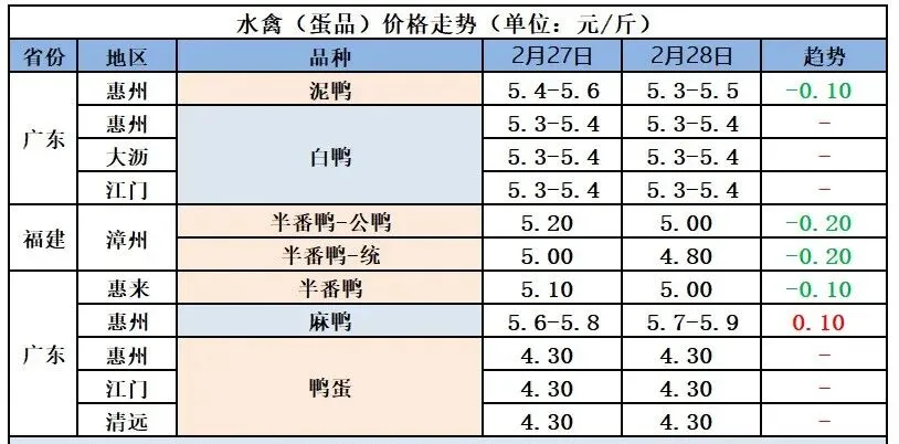 2026年3月1日全国鲜鸭蛋价格