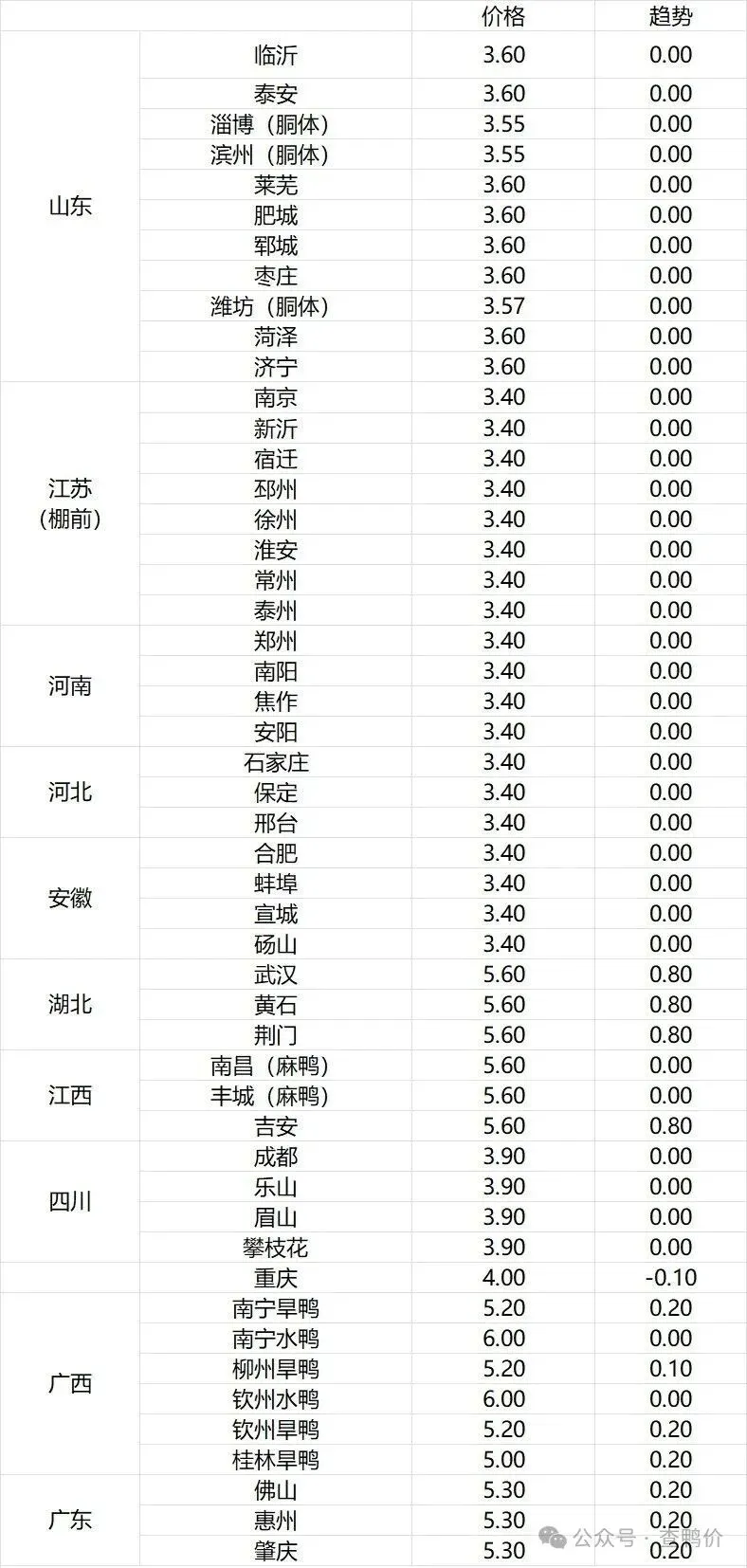 微评:鸭苗报价稳定。(注:南方只报当天价格)市场情绪平衡,整体库存处于阶段性低位,具体成交走势仍有待观察。根据产品、养殖成本及鸭苗现状分析,预计近期鸭苗价格呈稳中微调趋势。种蛋报价稳定。温馨提示:该价格为主流厂家报价,实际销售价格以成交价格为准,价格仅供参考。