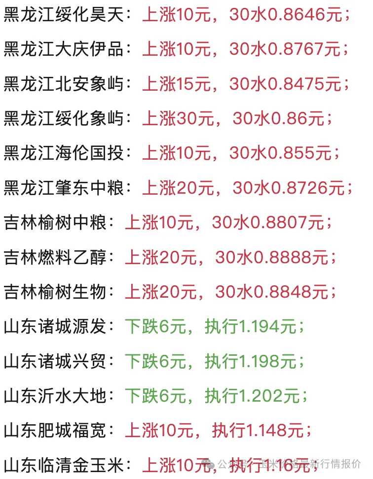 | 东北玉米深加工企业报价(仅供参考) |