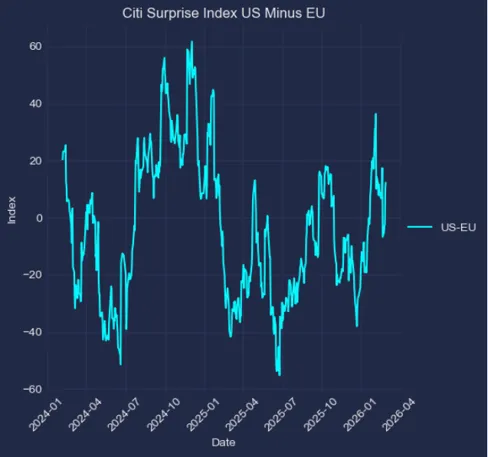美欧花旗经济意外指数差值:边际反弹