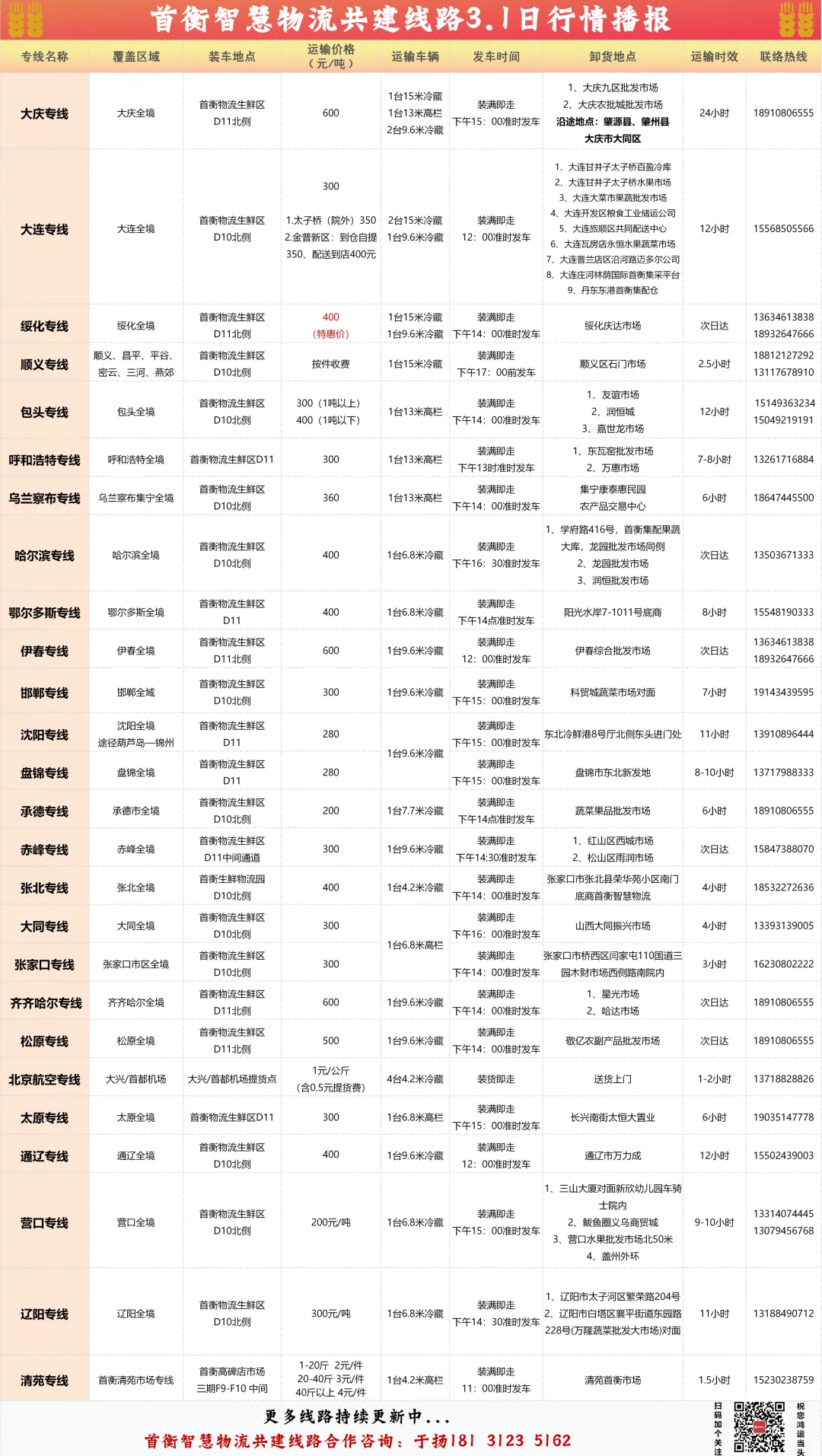 哈尔滨专线 运价400元/吨 13503671333