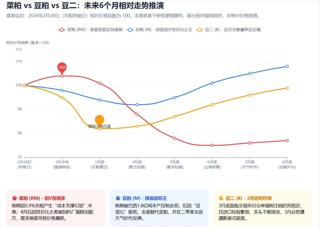 如果你觉得炒双粕太慢,想去豆二(B)里找刺激,那你正在玩俄罗斯轮盘赌。这不是基本面的问题,而是规则在杀人。** 根据大商所的死规定,去年所有的豆二“老仓单”,必须在3月底强制注销作废。这意味着什么?满大街都是便宜的巴西新豆子,谁愿意接盘马上“过期”的老豆子?手里拿着这些旧单子的多头,为了在月底前脱手,只能疯狂打折砸盘。3月底的豆二近月合约,注定是一场没有买盘的流动性大屠杀。** 绝不要伸手去接掉下来的飞刀。Q:加拿大菜籽反倾销税5.9%对菜粕价格有什么影响?A:短期构成情绪诱多,长期是实质性利空。5.9%远低于前期悲观预期,导致菜粕相对豆粕失去性价比,未来将被饲料企业大幅剔除出配方,面临需求崩盘风险。A:核心逻辑是“做多豆粕,做空菜粕”。随着巴西大豆利空出尽,豆粕性价比凸显将替代菜粕份额,豆菜粕价差(豆菜比)将迎来强劲的扩大修复行情。A:受大商所规则限制,旧仓单必须在3月最后一个交易日强制注销。叠加南美新季大豆集中到港,旧仓单接货意愿极差,极易引发多头踩踏式的流动性危机。“别为市场情绪买单,去为商业常识下注;菜粕今日的狂欢,终将是豆粕加冕的皇冠。”【免责声明】本文仅代表个人观点,基于已公开数据进行逻辑推演。期货市场存在高杠杆风险,本文不构成任何投资或交易建议。入市有风险,交易需谨慎。