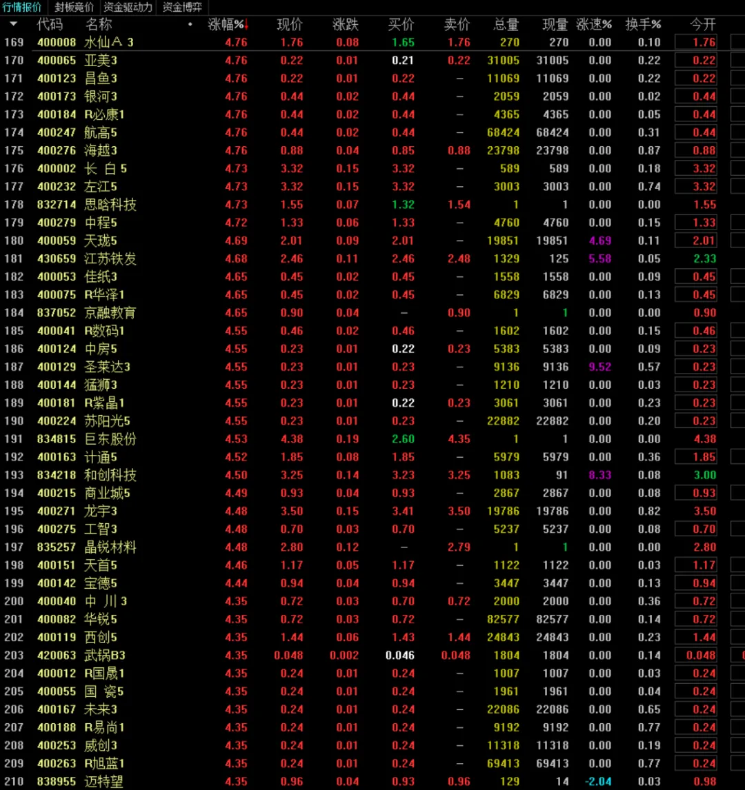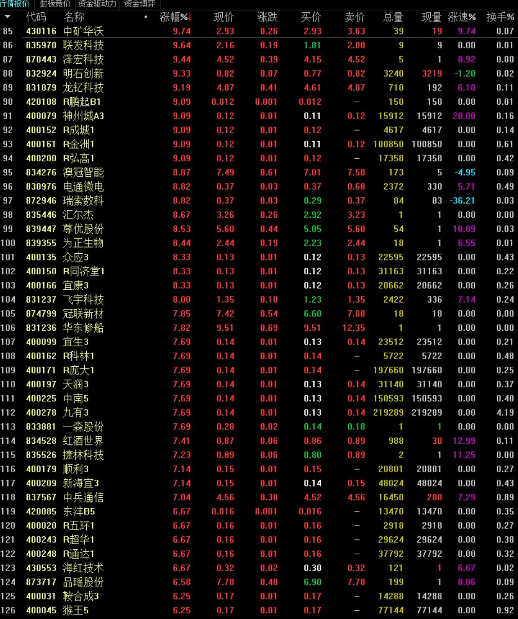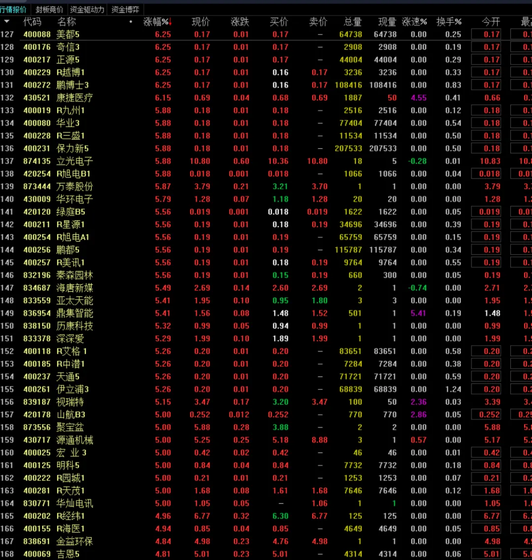 接下来老三板5系将迎来政策红利兑现期,优先选择不会降级的5系标的,结合战略资源、国资背景、转板预期布局。建议速筹50万开通老三板权限,但需理性评估风险,避免盲目追高。市场虽疯癫,但政策导向明确,价值重估与流动性提升是核心逻辑,需紧抓“5系连续竞价+30%涨跌幅”的制度红利,同时警惕波动风险。