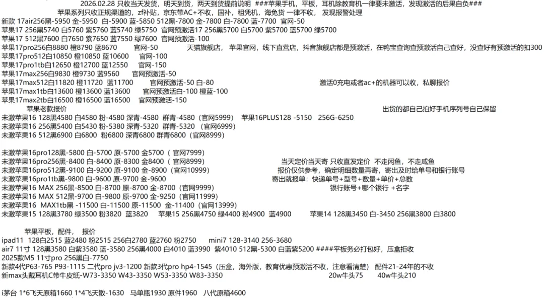 (1)二级市场为自由交易市场,价格实时波动,可能每个小时的卖价都不一样,此报价为华强北市场收货参考行情,实际结算价见公众号:鸟哥撸货数码结算价。