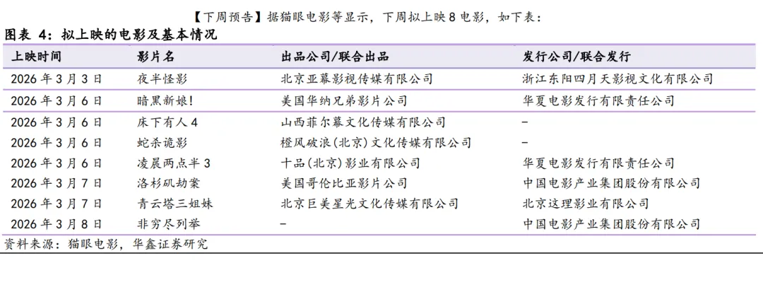 【下周预告】据猫眼电影等显示,下周拟上映 8 部电影,如下表: