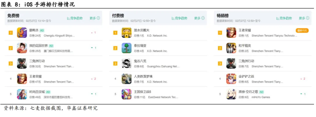 春节档小游戏女性向赛道“黑马”突围,情感触达或成行业竞争关键。2026年春节期间,女性向模拟经营游戏热度高涨,例如《我的花园世界》登顶微信和抖音小游戏畅销榜,实现“双榜第一”,手游端基本稳定在IOS免费榜TOP5;《时尚百货城》2月累计预估收入(扣除平台分成)超过1300万元。分析游戏《我的花园世界》热度高升的背后,主要有以下三个原因:1)内容层面,该游戏采用古风花店经营的题材,以“游戏种花、现实送花”的线上线下联动模式吸引用户,精准契合女性用户对“治愈系”内容的偏好;后置嵌入了成熟的类卡牌RPG玩法(如花种抽卡、副本挑战),吸引低付费的同时争取高玩的高充值,一次活动的充值金额可达8000元。2)营销层面,该游戏制作的“悲惨母亲”等情感向素材,精准触达25-45岁女性用户需求,实现“流量转化为用户、用户转化为付费”的闭环。3)传播层面,通过明星代言、“玩游戏送真花”的玩法,打造产品核心传播点与热度。未来,女性向游戏将从“泛流量投放”转向“精准情感触达”,在以真实福利、优质体验打动用户的同时进一步深耕女性用户的情感需求,借助明星代言、KOL种草、节日联动等方式,扩大传播范围,实现破圈增长。
