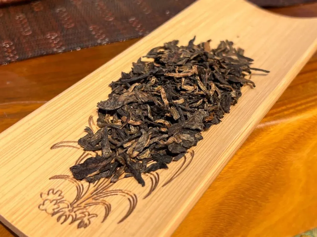 撬开棉纸,干茶色泽乌润,条索紧结。凑近闻,陈香和兰香先飘出来,清爽干净,没有杂味——这是仓储用心的证明。那种班章茶特有的气息也在,沉稳地藏在香气底层,不张扬,但一闻就知道。