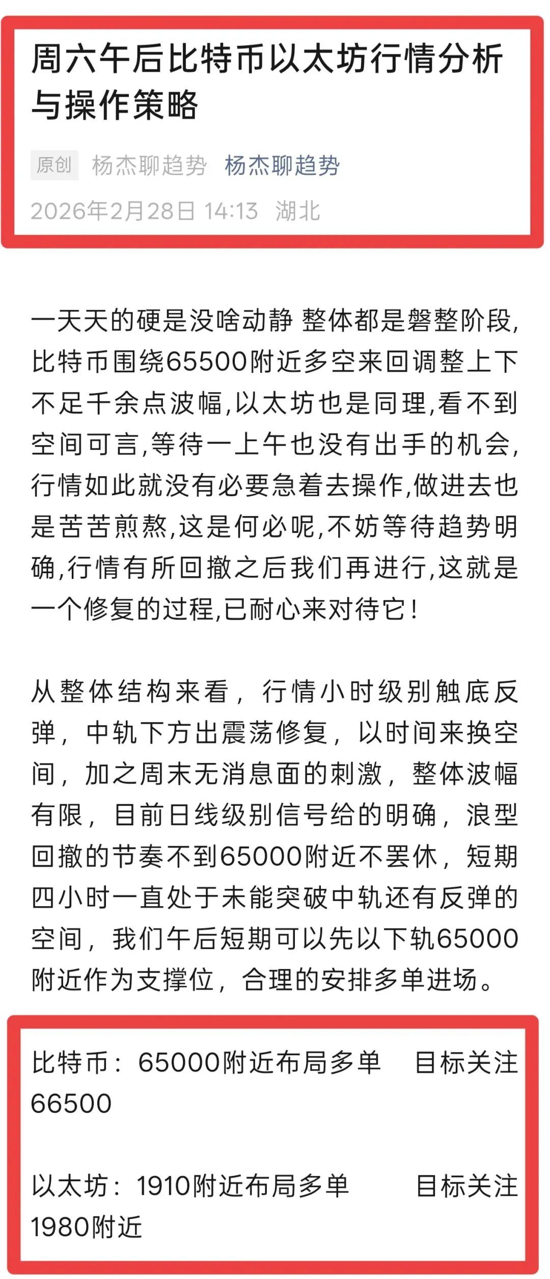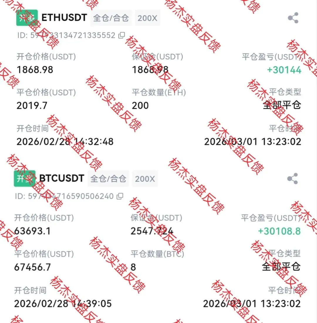 回顾早盘比特币与以太坊行情走势,比特币自65812低点附近出现反弹,反弹至68189点后出现小幅度回调修复。以太坊走势和比特币同步早晨呈现联动走势,先是在1942低点附近触底反弹至2054高点,随后出现小幅度回调修复。昨日杨杰看多思路完美收官,午后杨杰带领学员布局比特币以太坊波段分别在63693和1868进场,在67456和2019离场,比特币多单拿下3700多点空间,以太坊多单拿下151点空间