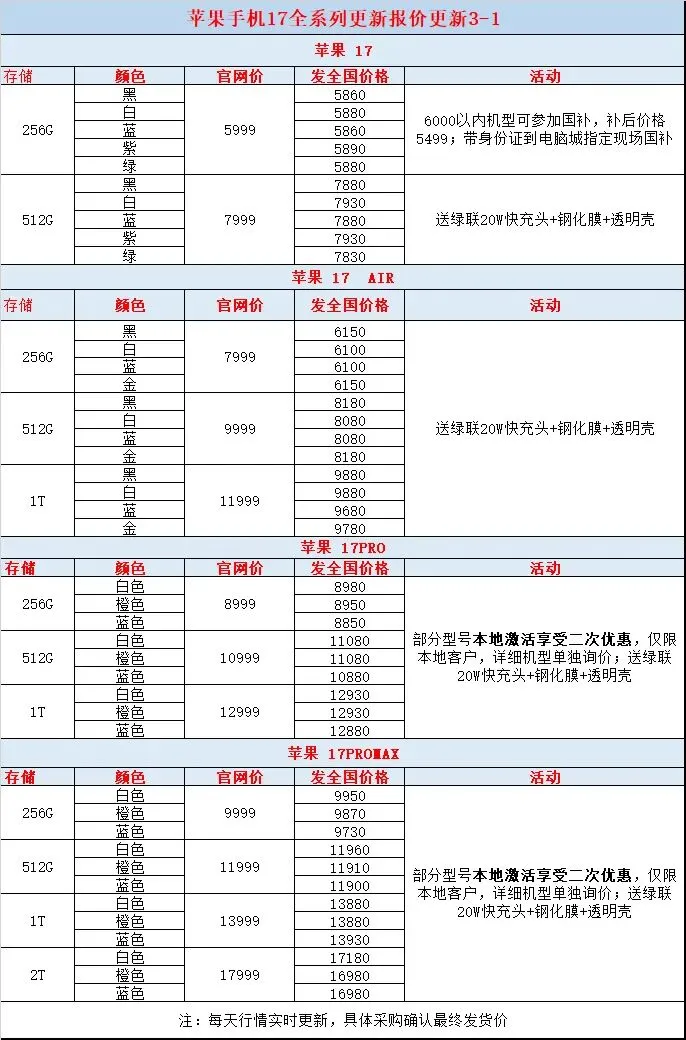 苹果17 256g可到电脑城指定地点参加国补优惠,带上身份证,每人限购一台