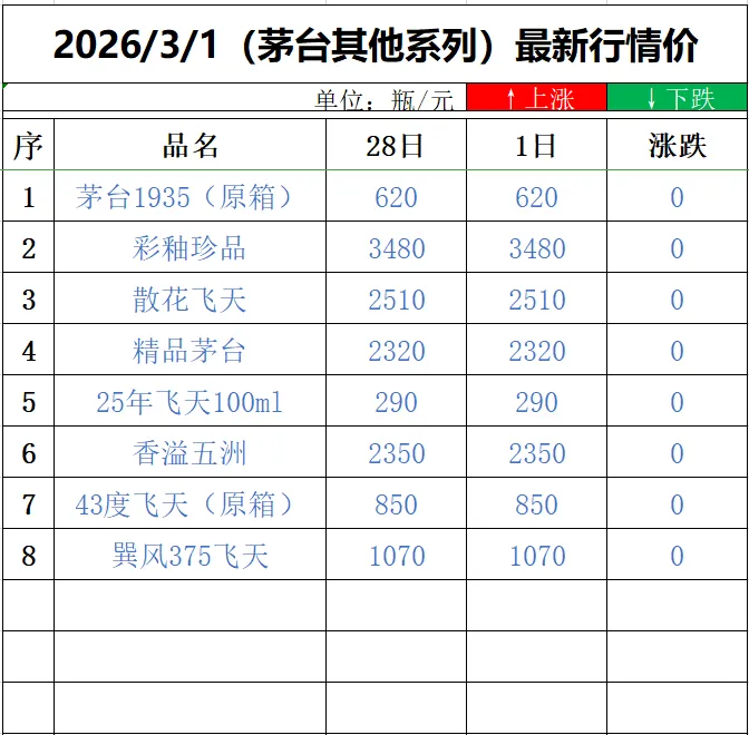 (请持续关注本平台,每日持续更新茅台酒最新行情价)