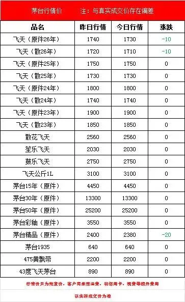 3月1日 茅台行情价(飞天/马茅下跌)