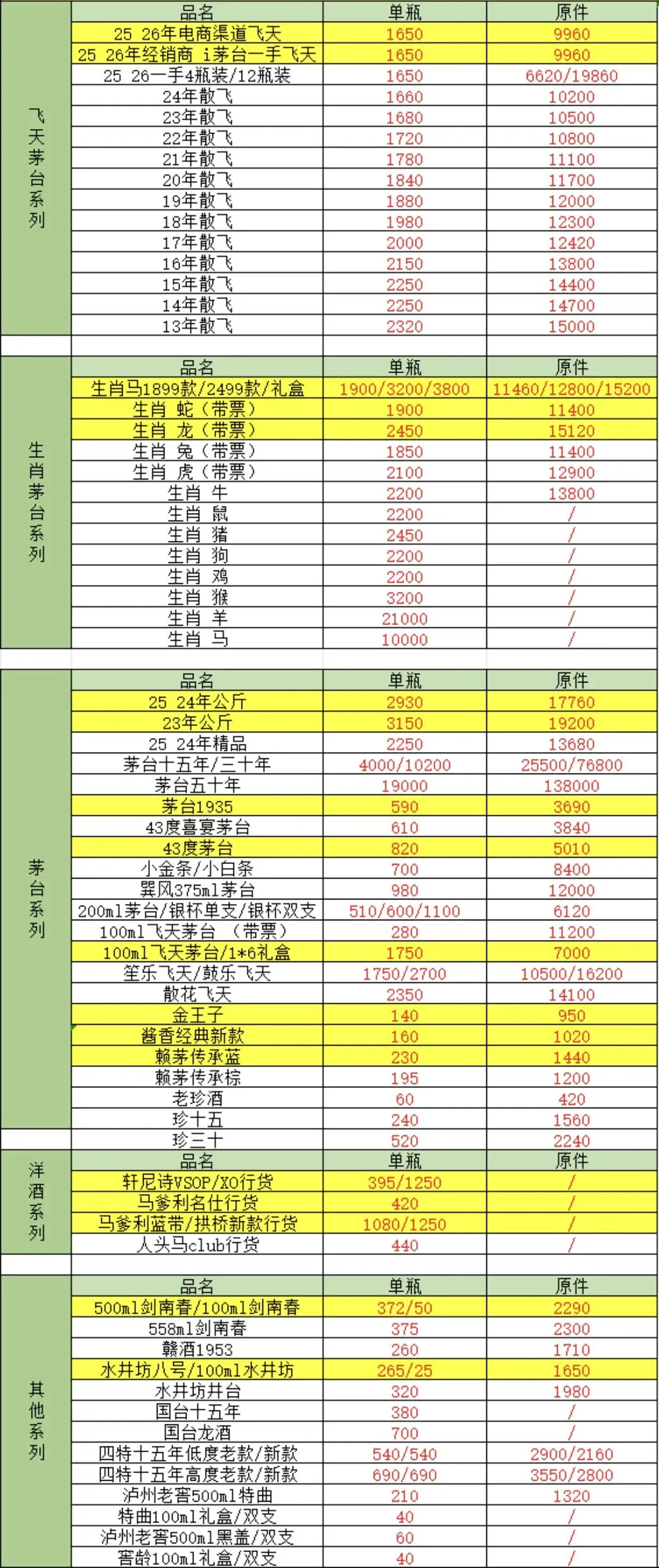 由于白酒飞天茅台价格存在实时变化、地区差异等原因,报价仅供参考。
