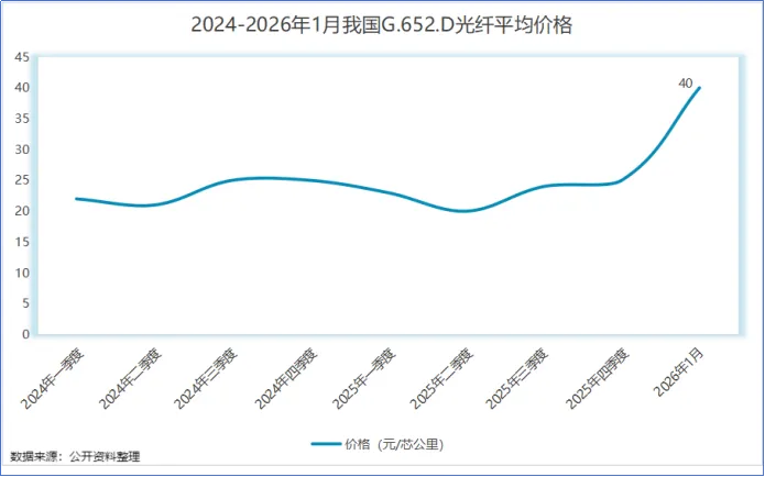 到了2026年1月,其平均价格超40元/芯公里,创下近七年来新高,部分厂商报价甚至达到了50元/芯公里,累计涨幅94%至144%