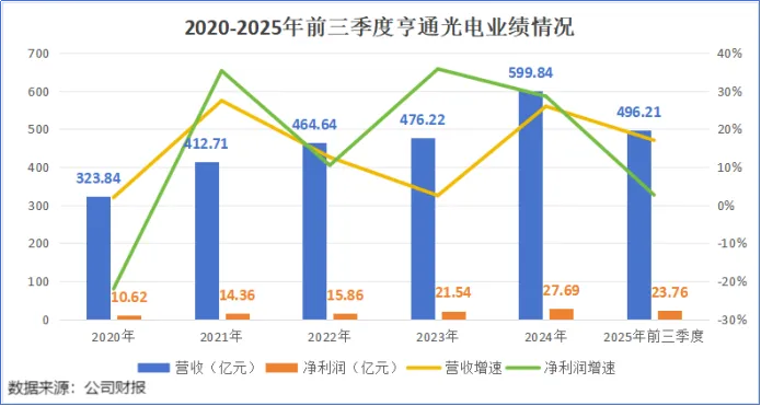 2025年前三季度,公司实现营收496.21亿元,同比增长23.76%;实现净利润23.76亿元,同比增长2.64%。