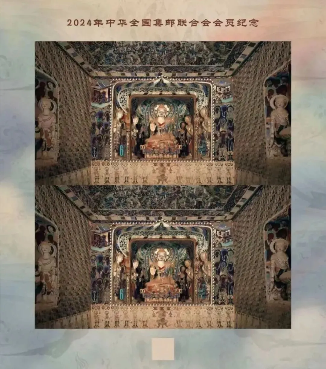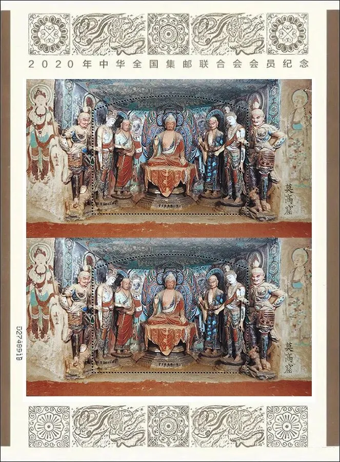 《莫高窟(二)》双连张(112.5%)。看来这种发行方式大为可行,以后可以多多使用,特别是那些“短腿”邮品(今年2月份的《出圉图》无齿大版邮折也采用了这种发行方式,值得肯定)。