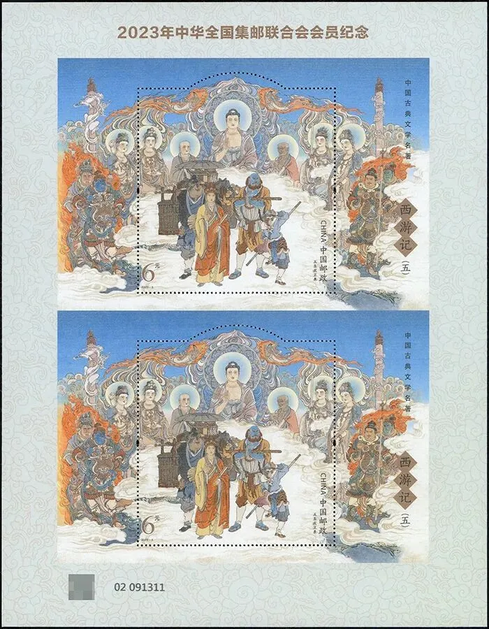 2023年中华全国集邮联合会会员纪念双连张——《西游记(五)》双连张首次采用以销定产的方式发行,最终发行量为399550版,对比上年度《红楼梦(五)》双连张的115万发行量直降约65%。这一举措直接导致
