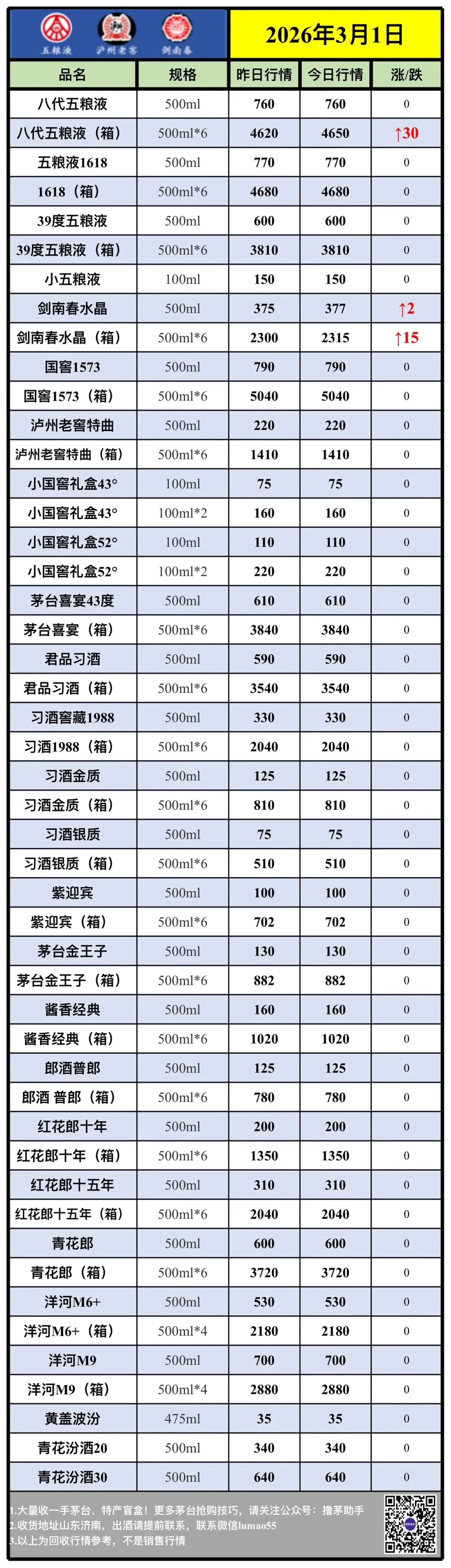 【茅粉情报】3月1日各大名酒批发行情参考价....
