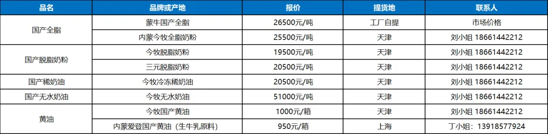 5. 国内主要企业动态:龙头乳企在节前放出一批国产奶粉后,节后停止销售,价格拉升至27000万元以上,惜售态度明显。