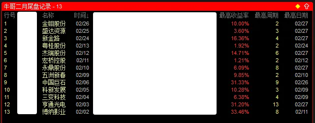4、尾盘模型2月份基本全胜,只要不跌破5日线,都能获得不错的收益。