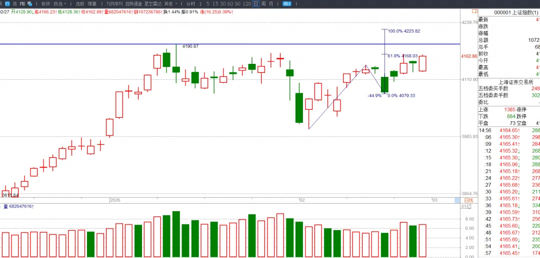 虽然大格局是上涨的,但是我们操作上还是需要去看日线级别的大盘走势,因为大趋势的上涨中间肯定会存在短期的回调,如果是做的细一点的或者想要走高抛低吸的亦或是想要规避回调的利润回撤做波段获得利润最大化的就得去看更小级别的走势以做出指导。对于我们中线做波段的来说日线级别的指导意义是要更大的。