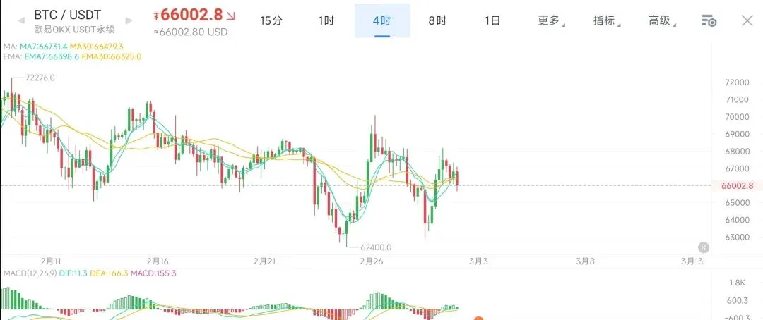 在具体操作上,目前更适合采取回调企稳后布局多单。比特币方面,多单可在价格回踩至66000区域、出现企稳迹象时轻仓介入,止损参考65800下方。若该多单被触发止损,则短期应转为谨慎,不宜追高,可等待价格进一步回踩至63000-64000区间再择机进场。空单方面,可关注价格反弹至69000-70000附近时试空,止损设于70500上方。