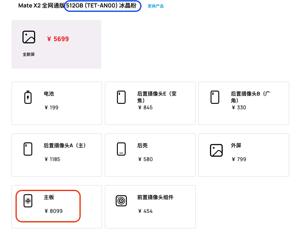如上图所见,华为Mate X2更换全新屏价格为5699元,外屏799元,后壳580元,电池199元,前置摄像头组件454元,后置主摄1185元,后置广角330元,后置变焦845元,256GB版本更换主板价格为7199元。512GB版更换主板价格为8099元。作为补充,前代华为Mate Xs和华为Mate X更换主板的价格为3599元。可以看到华为Mate X2更换屏幕和更换主板的价格都可以再买台iPhone 12或者Mate 40 Pro了。