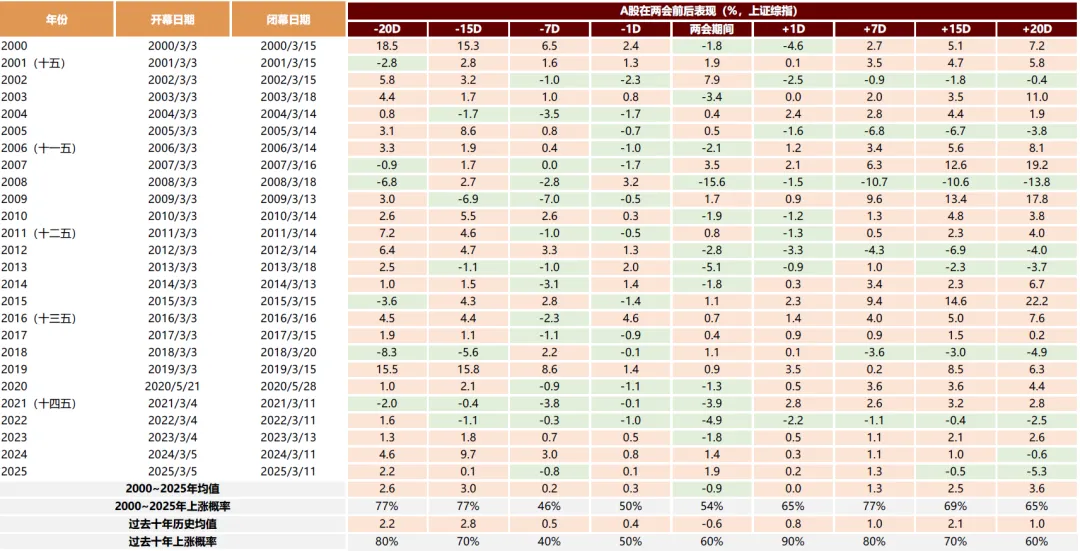 从2000年以来的情况来看,两会前后A股市场大多呈现较积极的表现,上证指数在两会前后20个交易日的平均涨幅分别为2.6%/3.6%。展望此次两会,我们认为受益于积极政策及改革预期、中外流动性宽松周期共振、AI技术革命与能源革命支撑部分产业需求,带动上市公司业绩改善,市场“稳进”趋势有望延续。假期海外市场在震荡中整体表现平稳,没有出现显著超预期利空。美国关税裁决有利中国对美出口预期,AI产业深化继续,中国在大模型、AI应用包括机器人等进展继续符合或略超预期,虽然产业变革带来行业竞争格局进一步分化,但整体产业牛的逻辑在加强,另外A股市场春节后的微观流动性有利环境与国内政策期待仍在,结合历史上的季节效应,我们认为当前所处的春季行情第二段仍有演绎空间。展望2026年,无风险收益下降/资本市场改革所构成的贴现率下降的力量还会发挥积极作用。但是,我们也要看到新的变化,随着中国经济政策以内需为首要任务,投资人对传统内需产业的悲观预期有望得以修正;中国新技术产业的突破与制造业的全球扩张,中国经济预期有望在2026年出现实质性的企稳与上修,并构成中国股市上升的第三个关键动力。2、“涨价”有望成为全年主线