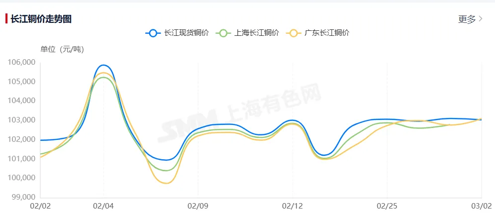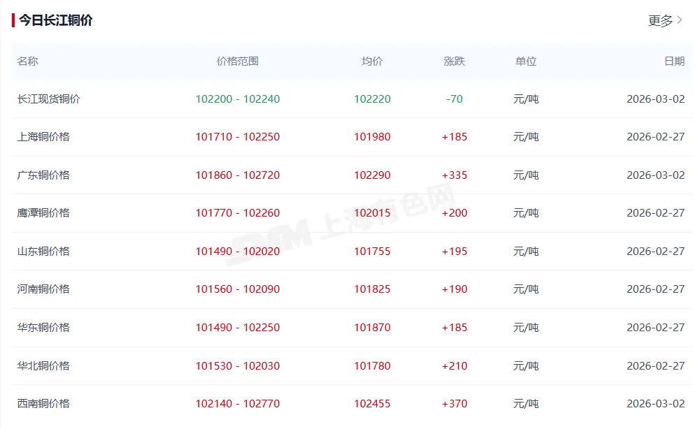 【铜价】3月2日长江现货行情