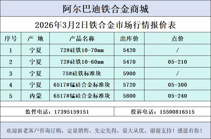 硅铁、硅锰市场行情(2026-03-02)