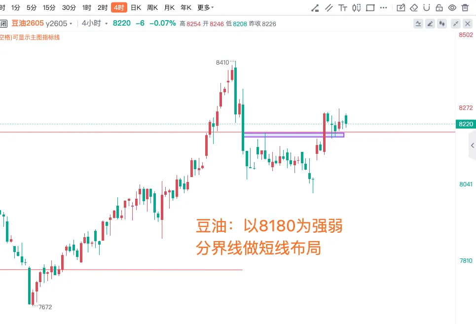 黑色系整体走势仍处于纠结和争夺之中,板块缺乏消息刺激,没有可炒作的热点,整体处于半死不活的状态,市场依然在期待两会政策利好,现阶段仍看不到能落地的政策,“反内卷”如果依然停留在口号上,市场信心仍会不足,短期维持相对低位的震荡修正做日内的超短线布局,暂时看不到波段行情的机会!油脂板块:棕榈油,豆油,菜油,马棕油: 油脂板块的纠结仍在持续,目前看菜油表现最强因为年后第一个交易日的低点目前没有被打破,所以菜油9140之上仍需保持强势格局,棕榈油是最弱的,开年高开后持续走弱,可以说是拖累了整个油脂板块,短期核心支撑在周线级别的8570区域,豆油相对也偏强,短线给出了8180作为短期的强弱分界线,守住8180支撑按照强势做短线的布局即可,整体油脂的分化或许要等棕榈油止跌企稳后才能统一方向!苯乙烯:
