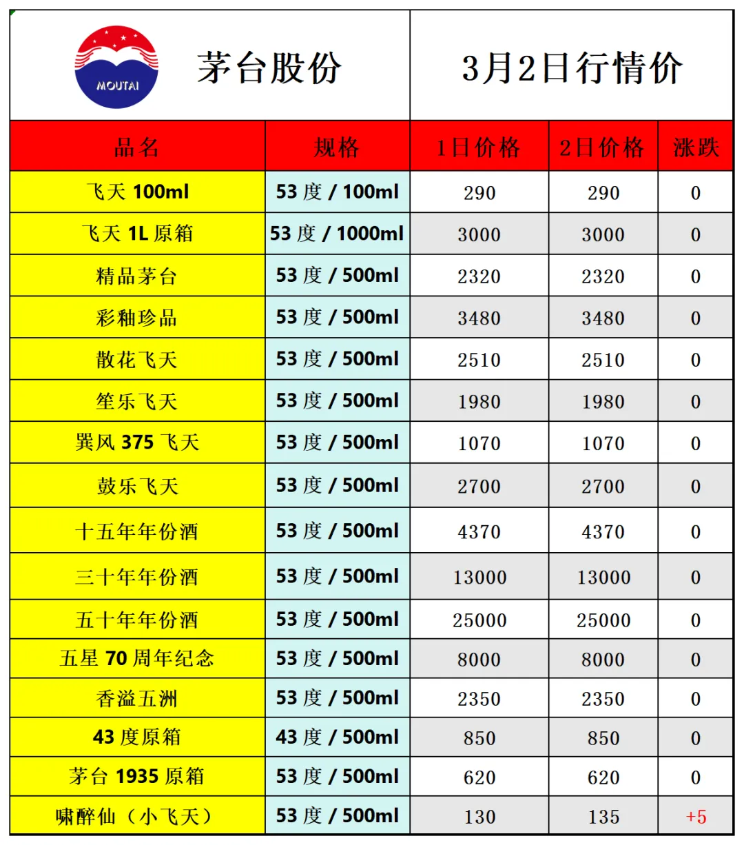 因各地行情有所不同,价格仅供参考!每天更新茅台价格,飞天茅台相关热点资讯,由于平台修改了推送规则,如若不想错过白酒市场行情报价参考, 请点击文章右下角的“在看”,推送会第一时间出现在订阅列表里,谢谢各位茅粉!
