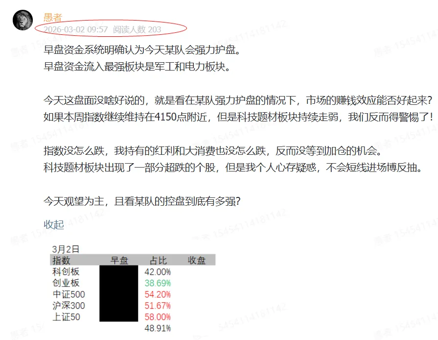 资金系统明确认定今天某队一定会强行稳住上证指数,但是多数个股大概率就顾不上了。只有1000多只股票收阳,全A平均股价大跌1.5%以上。现在上证指数继续强拉到4170点上方,离4200点的阻力区仅仅只有一步之遥。这行情就像一根鱼刺卡在你的喉咙里,上不去也下不来。你想等市场砸下来,给你一个相对舒服的进场位置,某队不让;你想赌市场一定创新高,但是多数个股不配合,你又不敢重仓进场。这种盘面,除了做做指数期权的日内波动,也没有什么好办法。今天下午,某队当然会继续护盘,但是市场的赚钱效应能否回来就只有天知道了!最后的最后,推一下我的新付费圈: