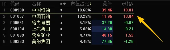 今天红利板块的上涨,基本上是得益于两桶油的上涨。
