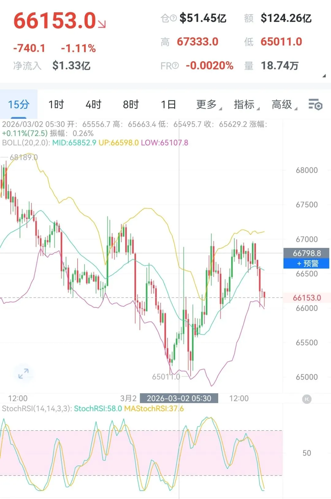 从当前磐面来看,比价昨日白磐走出一波探高回落的形态,比特币最高触及68189一线,然后走震荡下行的格调,直至今日清晨,比价最低触及65011一线后企稳,开始走反攻,格调相反,走出一步高一回头姿态,每次回踩都未跌破前低,目前也并未触及昨日最高点,也就还未抵达我们承压位,午后操作保持回踩接多的节奏,以太仿走势相同,目前位置皆可现价接多,大饼上看68000附近,以太上看2050附近,短线自行把握进场苍位,有莉润皆可先行洛带。