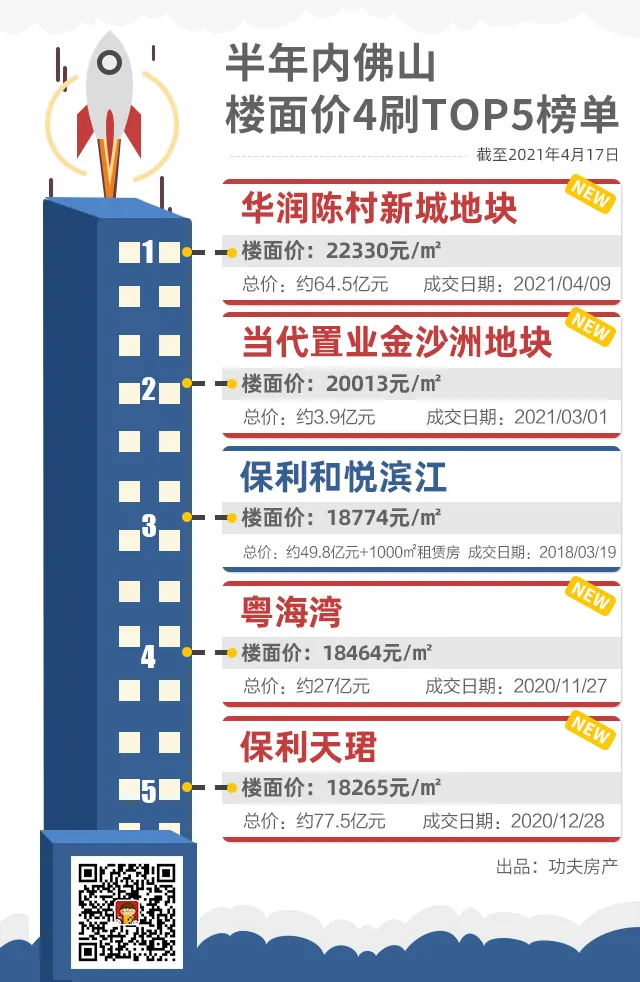 1、据佛山市公共资源交易网,过去的半年,佛山地价TOP10榜单已被四次刷新。3月初金沙洲地块才踏上2万/㎡,1个月出头的时间,陈村便以2.2万/㎡强势夺冠,创下全市地价新高。