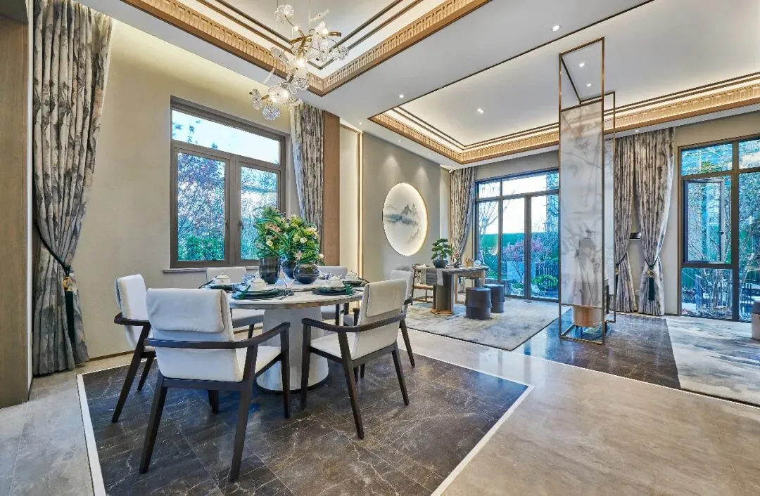 约6米挑空客厅,超大落地窗,采光和视野一绝,宴客、聚会、团圆、闲叙.....承载相聚的美好时光。