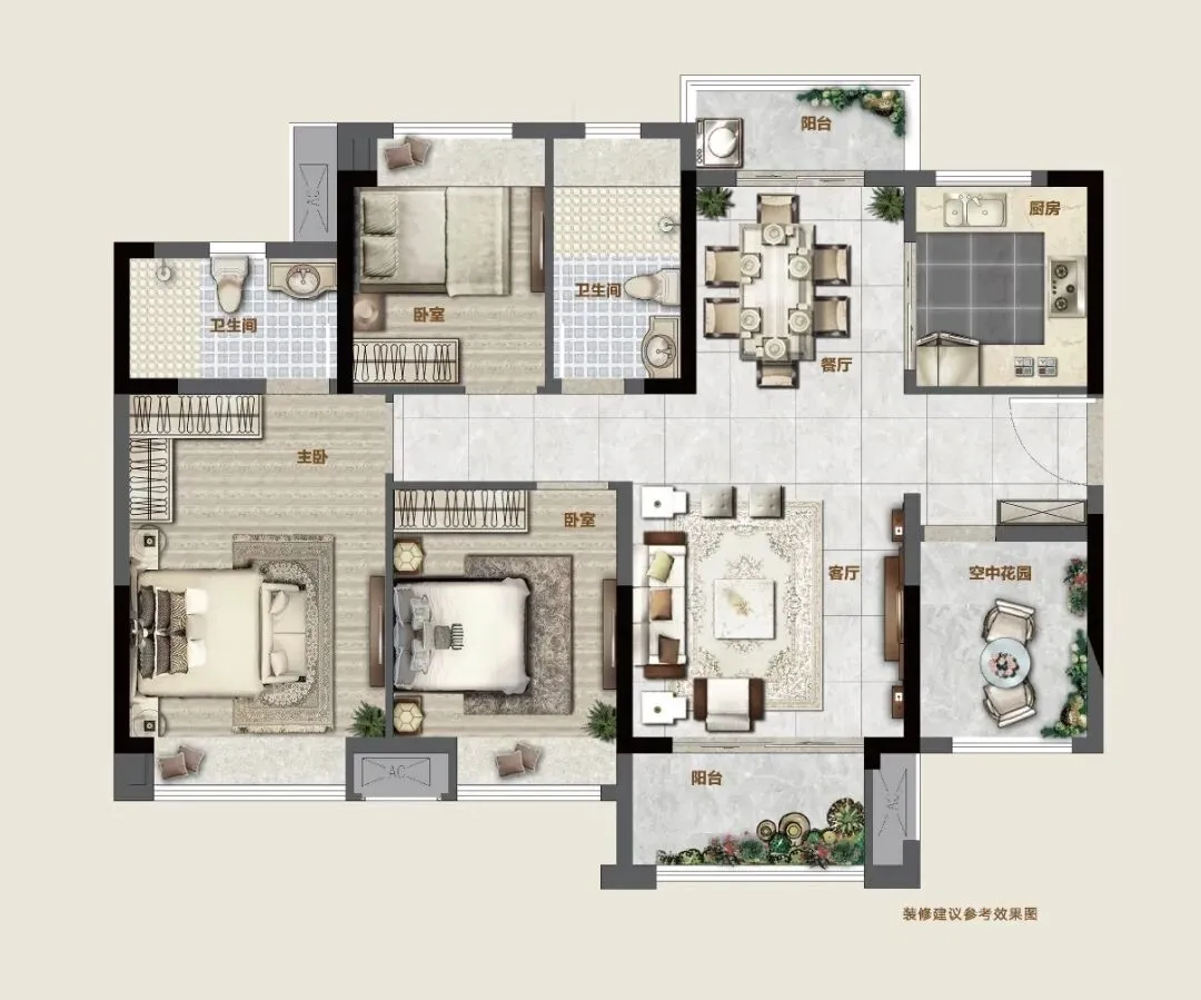 空间灵动,无论是休息、娱乐、吃饭,还是天伦之乐,都有着合理的安排,区域上少有产品能与之媲美。