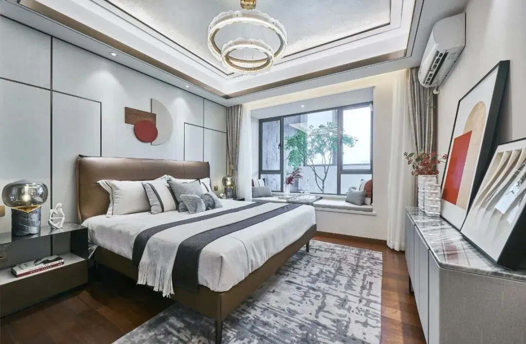 主卧自带独立卫生间,南向景观飘窗采用大面积玻璃幕墙,视野MAX。在此,看书,听歌,赏景,生活难得写意。