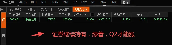 总体来看,今日市场由地缘政治风险主导的“避险”与“通胀”交易完全主导。尽管指数分化,但成交量急剧放大至3万亿以上,显示有大规模资金在进行调仓换股,从前期涨幅较大的科技、光伏等板块流向资源品板块。对于后市,机构普遍认为此次冲突标志着中东地缘风险实质性落地,短期将主导全球资产定价逻辑。沪指在盘中发出买入信号,若后续确认,或将吸引技术性资金进一步流入,但资源品行情的持续性与原油、黄金价格的走势及中东局势的演变高度相关。对于多数中小盘个股,风险偏好的下降可能导致短期走势承压。模拟盘情况:证券Q2降准必然大涨,目前埋伏就行……声明:图片中的个股和模拟盘仅供技术研究参考和模拟,不做投资依据。做股票,顺势而为,资金安全为主,祝大家好运!