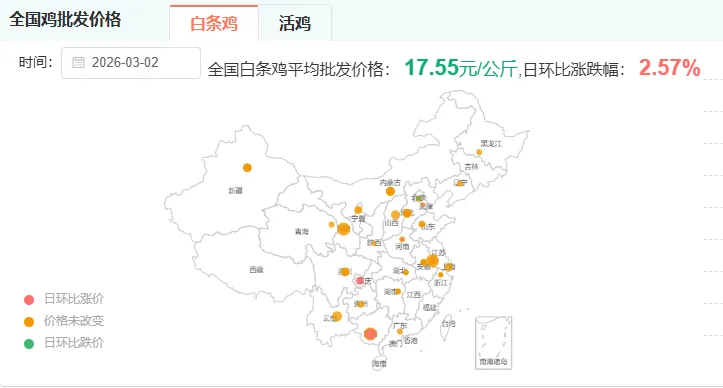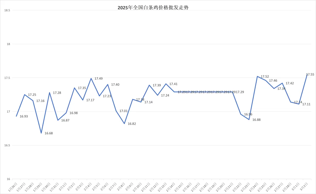 全国白条鸡平均价格:17.55公斤