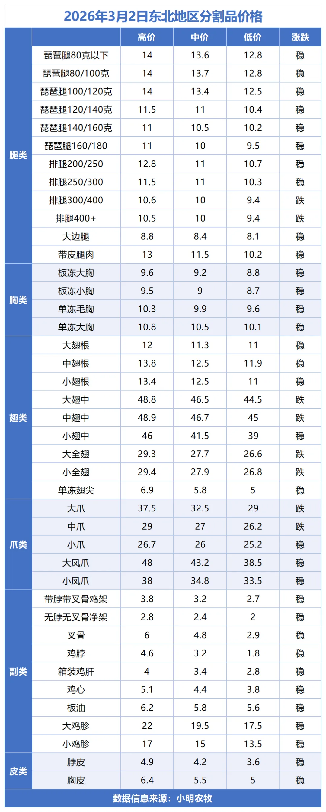 东北地区分割品价格