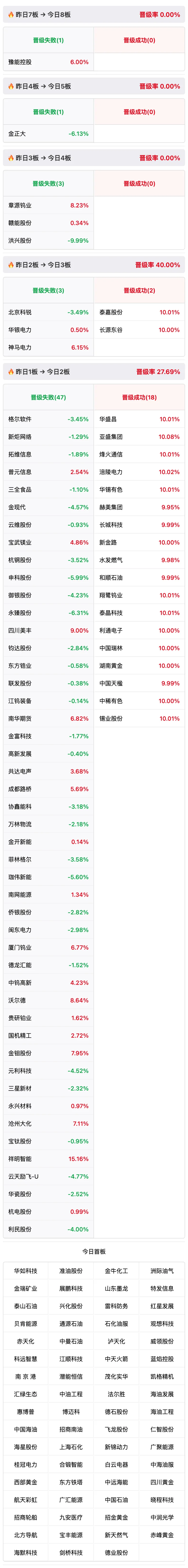 2连板:亚盛集团、华锡有色、新金路、翔鹭钨业 首板:威领股份 | |