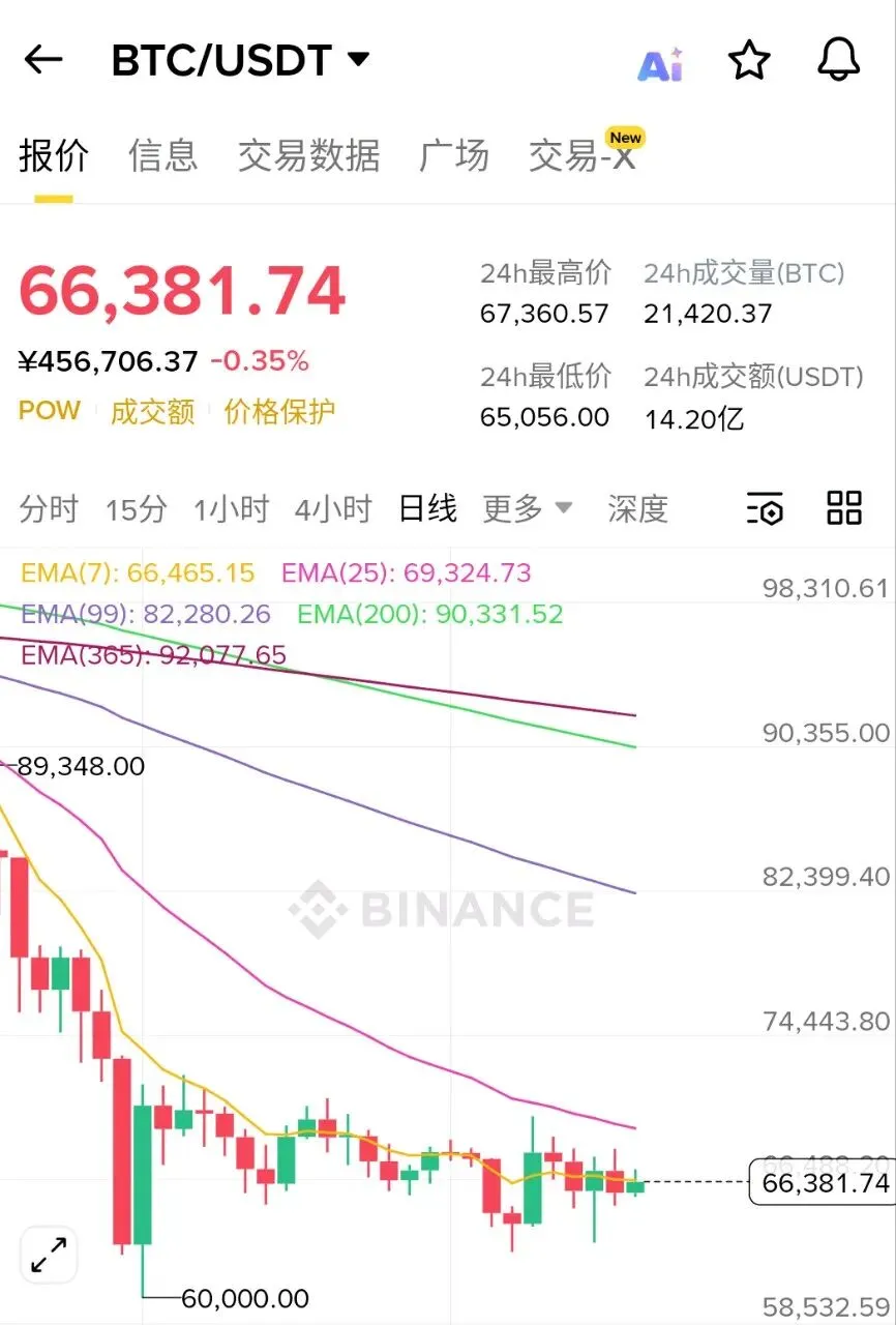 当前价格约 66,358 USDT,