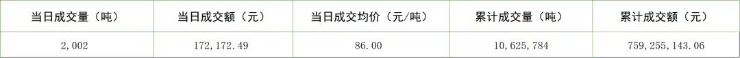 今日无挂牌协议交易;大宗协议交易成交量200,000吨,成交额16,200,000.00元;今日无单向竞价。