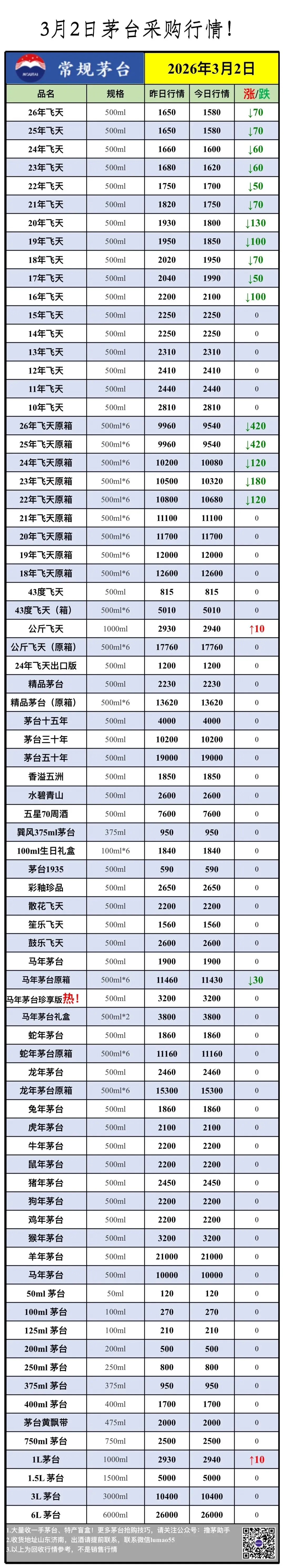 >3月2日 茅台行情,飞天暴跌!